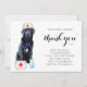 Two Small Words 'Thank You' seem so small in comparison to all you have done, but they come from the deepest part of our hearts! ~ Thank the health care professionals in your life with this cute black labrador dog nurse thank you card with face mask, stethoscope and medical red cross. Designed for hospitals, healthcare clinics and medical doctor offices. Whether it's Nurse's Week, Nurses Day for nurse appreciation, or just to say Thank You for caring for a family member, this black lab dog Happy Nurse's Day cards will bring a smile to the special nurse , or anyone in the medical healthcare field. Visit our collection for the best greeting cards for nurses day! Personalize the back with your special message or delete for blank.