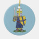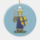 A cute cartoon knight clad in mail and great helm holds his sword high, ready to defend his castle.
