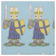 A cute cartoon knight clad in mail and great helm holds his sword high, ready to defend his castle.