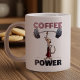 A funny meerkat weightlifter on a speciality mug. Use "Personalize this template" to tweak the "COFFEE POWER" text and create a unique, customized gift. A surprise for a coffee lover, featuring a cute cartoon of a skinny meerkat in big shorts, smiling as he effortlessly lifts a huge barbell with one finger. For fans of weightlifting, meerkats and/or coffee.