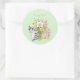 Cute and adorable sticker with cat, bunny and a spring bouquet. Green background and soft colours.