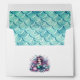 Make a splash with this adorable mermaid-themed envelope, featuring a whimsical illustration of a sweet mermaid girl surrounded by seashells, sea stars, and coral. The inside liner dazzles with a faux glitter teal-blue mermaid scale pattern, perfect for ocean-inspired parties. Ideal for baby showers, birthdays, or any under-the-sea celebration, this envelope adds a magical finishing touch to your invites!