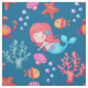 Cute mermaid pattern underwater / sea theme nursery fabric pattern for kids room decor nursery decoration and craft projects.