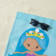 This fun beach towel features mermaid princesses swimming among fish, sea horses, and a cute little turtle. Add your child's name to personalize. Perfect for the mermaid lover!