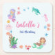 Cute Mermaid Rainbow Watercolor Birthday party Square Paper Coaster