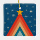 Cute Merry & Bright Retro Groovy Christmas Tree Ceramic Ornament