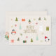 Fun christmas card with symbols of the holidays such as christmas trees , penguins, presents and holly.