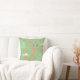 A green throw pillow with a pattern of a pair of cute reindeer in love having fun in various Christmas related activities. They include ice skating, dancing, riding a reindeer sleigh, building a snowman and rubbing noses. Design also includes a typography of the words "A Very Merry Christmas". Various snowflakes fills up the pattern. Great for decorating a couple's house for Christmas.