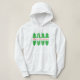 This cute hoodie features green Christmas trees with a customizable holiday greeting.