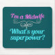 A beautiful gift for midwives that reads I'm a Midwife, What's Your Superpower? This pretty print features pink and teal writing with a silver flourish for some extra sassy flair on a midnight blue background. Midwivery is amazing for the natural childbirth process. Celebrate your midwife with this unique gift.