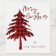 Cute Minimalist Red Plaid Pattern Christmas Tree Wine Label