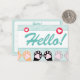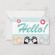 Cute Mint Green Cat Paws Up Hello Lined Mini Note Card