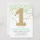 Cute Mint Green Gold Glitter Confetti 1st Birthday Invitation