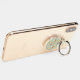 The piece to peel off is on the entire back of the grip when received, though it's not super easy to tell, just lift carefully with a fingernail end and peel off. The grip sticks well to the phone, is very stable and immobile once adhered. Know exactly where you want it before pressing it on. The printing was fine, colours were quite true to what I saw on my personal screen. Fine small lines turned out well. The artist's Mandala design is gorgeous.