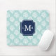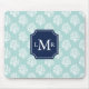 Cute Mint Summer Pattern and Blue Monogram Mouse Pad