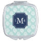 Cute Mint Summer Pattern and Blue Monogram Vanity Mirror