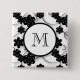Cute Mod Black Flowers Pattern, Your Initial Pinback Button