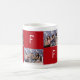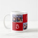 Cute and trendy coffee mug for three best friends with three horizontal photos that can be customized, the letters BFF on red rectangles, two customizable names, and the text "Best Friends Forever" -- which can also be customized, if you wish (for instance, to read "Best. Friends. Ever.").