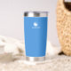 This sleek, modern beach palm tree design features your name in contemporary minimalist font set against an elegant blue backdrop. Just enter your name in the personalization field to create a chic, fashionable tumbler. While displayed with your name, this stylish thermal tumbler can be personalized with the names of your children, parents, grandparents, or even your business. Ideal for exercise, outdoor events, school, or the office, this custom tumbler is an excellent personalized gift for those who appreciate a robust, fashionable insulated tumbler to maintain their drinks at the perfect temperature.