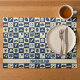 Cute Modern Blue Checkered Icons Pattern Boy's Fun Cloth Placemat