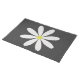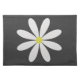 This modern placemat features a dark textured background. On top of the background is an illustration of a daisy with white petals and a yellow center.