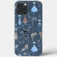 Cute Modern Elegant Funky Cats Pattern On Blue Case-Mate iPhone Case