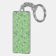 Cute modern green curly leaves pattern monogram keychain