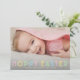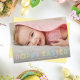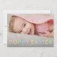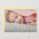 This cute yet modern Easter photo card features a single horizontal photo with pastel colored typography. The backer is a yellow & white diagonal stripe to coordinate with the type color. All of the colors in this design are customizable, including greeting colors and backer.