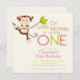 Cute Modern Monkey 1st Birthday Party Invitations