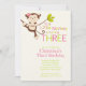 Cute Modern Monkey 3rd Birthday Party Invitations