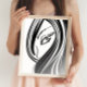 This poster is a captivating example of modern line art, presenting a stylized female eye amidst flowing black and white curves that suggest the elegance of long, wavy hair. The bold contrast of the lines creates a striking visual that is both sophisticated and simple.