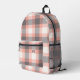 Cute Modern Peach Check Plaid Monogram Initials Printed Backpack