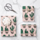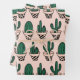 Cute Modern Pink Green Potted Cactus Pattern Wrapping Paper Sheets