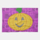 Cute Modern Pumpkin on Purple Geometric Kitchen Towel