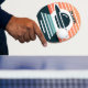 Personalized ping pong paddle featuring a cute modern and minimalist UFO design at sunset.