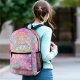 Cute modern unicorn hot pink faux glitter monogram personalised Backpack. It is designed with elegant girly silver and iridescent faux glitter in unicorn, rainbow, pink, aqua and purple.