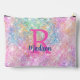 Cute modern unicorn pink faux glitter monogram personalised Accessory Pouch. It is designed with elegant girly silver and iridescent faux glitter in unicorn, rainbow, pink, aqua and purple.