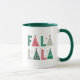 A cute, whimsical and modern holiday mug featuring the words FA LA LA LA in a hand-drawn style. The As are represented by Christmas trees.