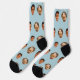 Cute and funny personalized 2 face photo crew socks for moms with a light steel blue color. To use a cutout of your son or daughter's face like in the example, the background must be transparent and the file format a png. You can download any mobile or computer app, or use the program named Canva or Photoshop.