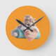The vibrant artwork and round shape make it a stylish decorative piece while also being fully functional for everyday timekeeping. A lovely mix of emotion, charm, and home decor style.