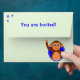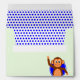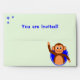 This cute 2nd birthday party envelope has a smiling monkey holding a blue 2nd birthday balloon on the back, and a matching single balloon on the front. Inside there is a polka dot pattern of blue spots, and the top flap is decorated with three blue stars. There is editable text "You are invited!" also in blue, or you can change this to suit. The envelope is colored pale green, but you can choose an alternative custom color if you prefer.