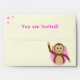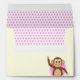 This cute 2nd birthday party envelope has a smiling monkey holding a pink 2nd birthday balloon on the back, and a matching single balloon on the front. Inside there is a polka dot pattern of pink spots, and the top flap is decorated with three pink stars. There is editable text "You are invited!" also in pink, or you can change this to suit. The envelope is colored pale cream, but you can choose an alternative custom color if you prefer.