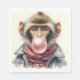 Cute Monkey In Scarf and Jacket Bubble Gum Napkins