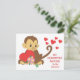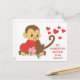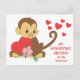 This cute Valentine post card has a little brown monkey holding a red heart and pink flowers. To the right of him are little red hearts. Red text at the bottom says NO MONKEYING AROUND, Be My Valentine! and there is an extra text field on the back. Fun for kids of all ages! All the text is easily customized.
