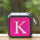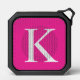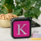 Cute bluetooth speaker featuring your monogram initial in elegant white typography on a hot pink background.