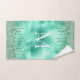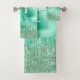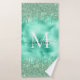Cute Monogram Metallic Mint Green Dripping Glitter Bath Towel Set