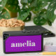 Cute bluetooth speaker featuring your monogram name in trendy bold white typography on a bright purple background. You can adjust the size of the text in the design tool for shorter or longer names.