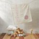 Wrap your baby in a warm and comfortable monogrammed baby blanket. A nice pattern design of pink names on a very pale yellow background, personalized with baby name and birth date, and with a circle monogram