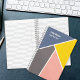 A simple, minimalist design with colorful pastel color block design with a custom monogram to add student's full name and school subject for back to school season. _