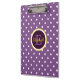 White polka dots pattern works like overlay so purple background color can be personalized. Click on customize further to change the color and/or font style of the name and monogram.